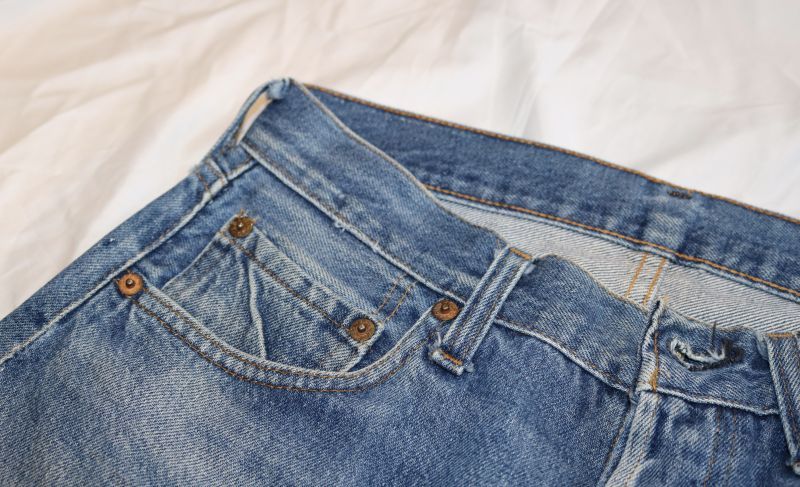 トップボタン裏刻印6、赤耳、バックポケット裏チェーンステッチ